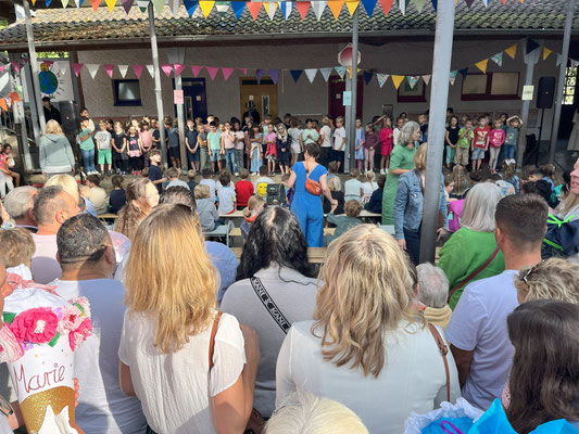 Am Donnerstag, den 22. August 2024 konnten wir bei schönstem Sonnenschein unsere 74 neuen Erstklässler mit ihren Eltern, Großeltern und weiteren Verwandten zur Einschulungsfeier auf unserem