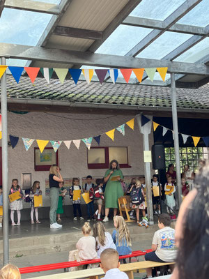 Schulhof begrüßen. Zum Start der Feier sangen die Zweitklässer ein Lied, später führten sie noch einen Tanz auf. Nachdem unser Schulleiter Herr Hermann ein kurze Begrüßung gesprochen hatte, kam
